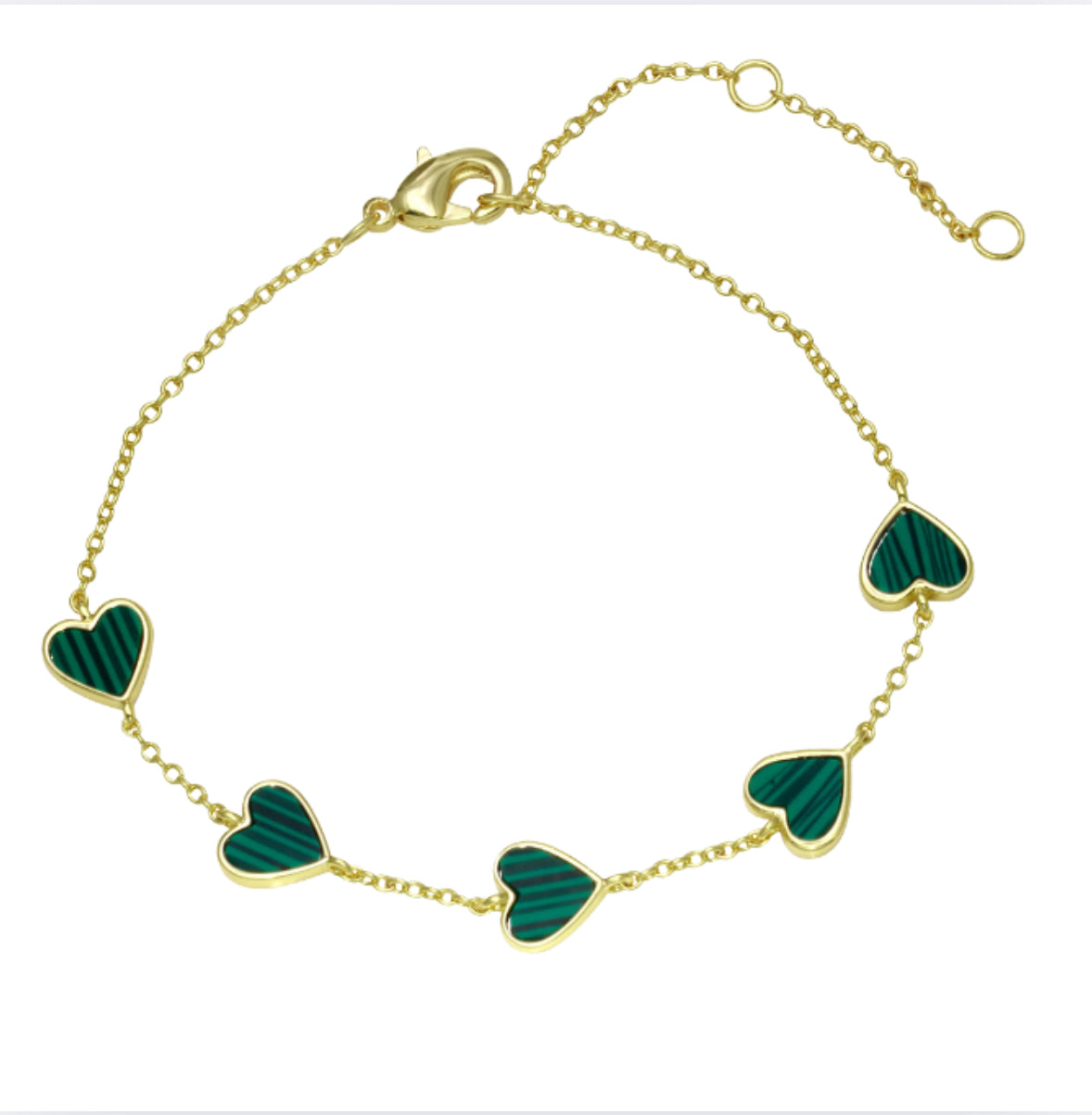 Gold bangle cuff bracelets with cubic zirconia diamonds and heart motifs